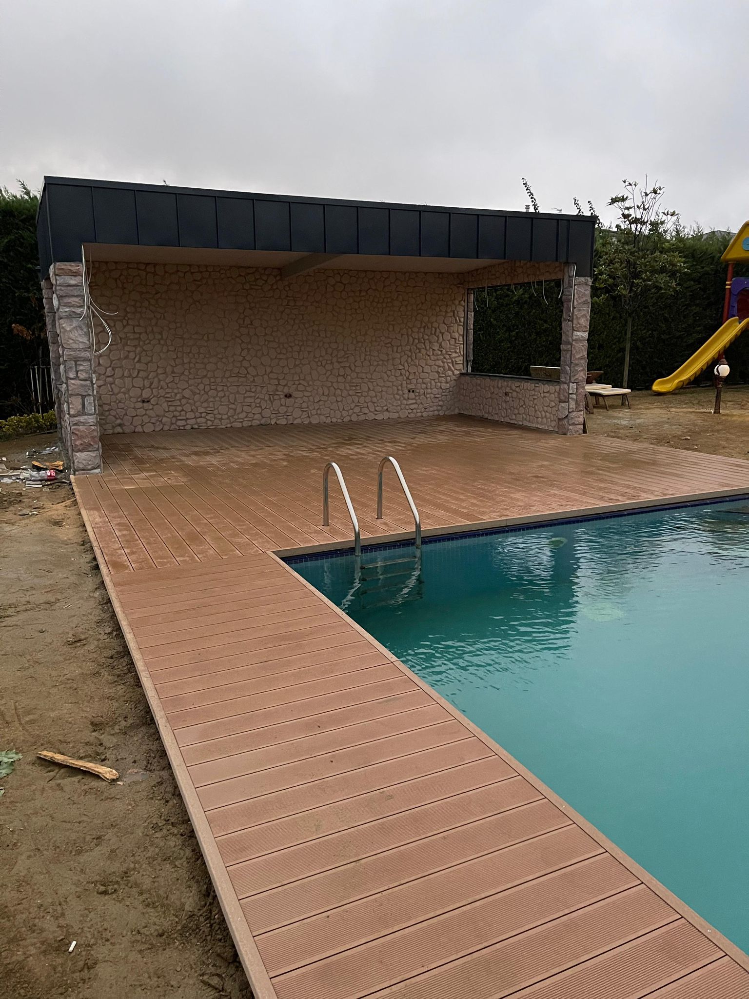 Azerbaycan'da Enka Holding tarafından yapılan ahşap kompozit döşeme projesi havuz kenarını yenileyerek şıklığı artırdı.