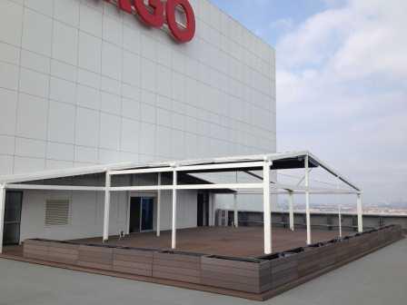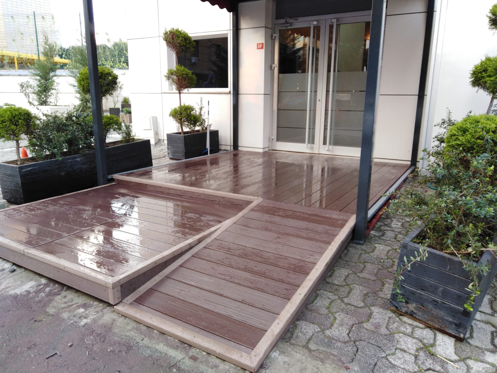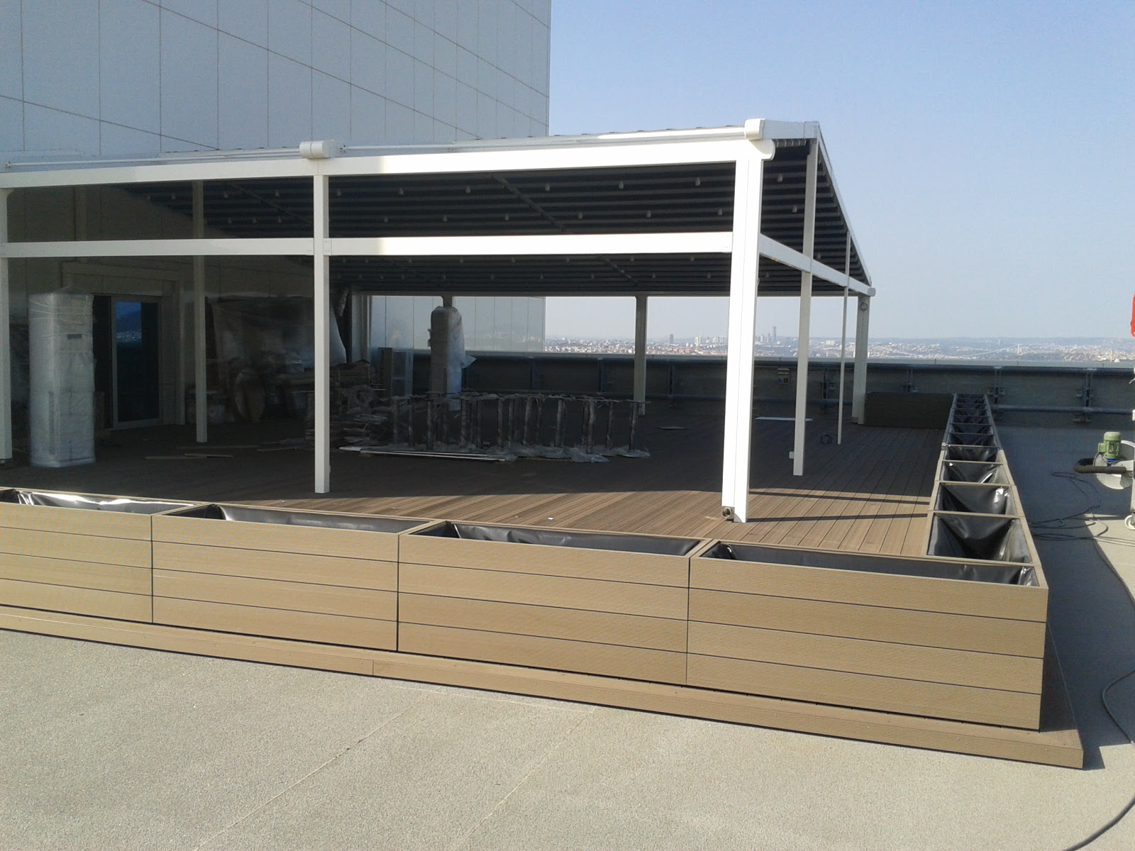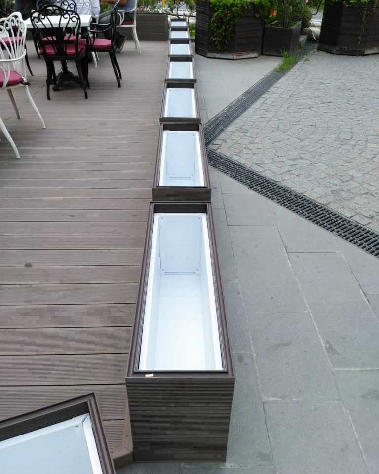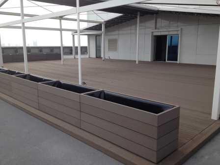 ERGO Azerbaycan'daki projede, teras katındaki cafe için zemin ve çiçeklik saksı uygulaması yapılmıştır.
