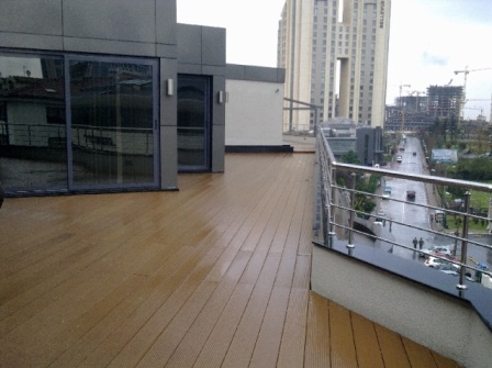 Azerbaycan'da ahşap kompozit deck döşeme kurulumu yapılır. Uygundur.
