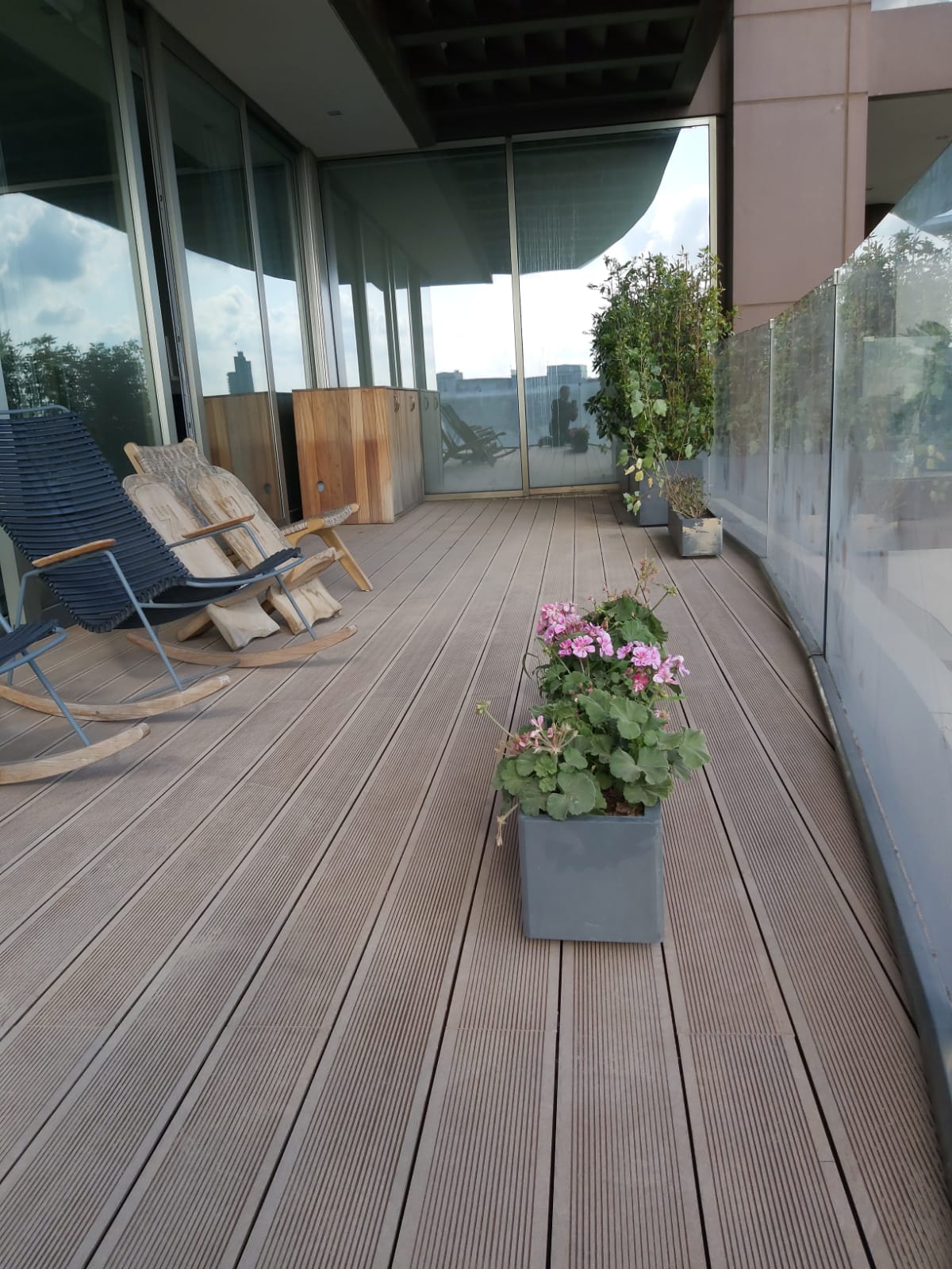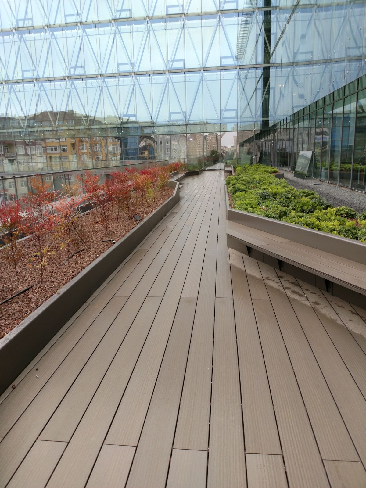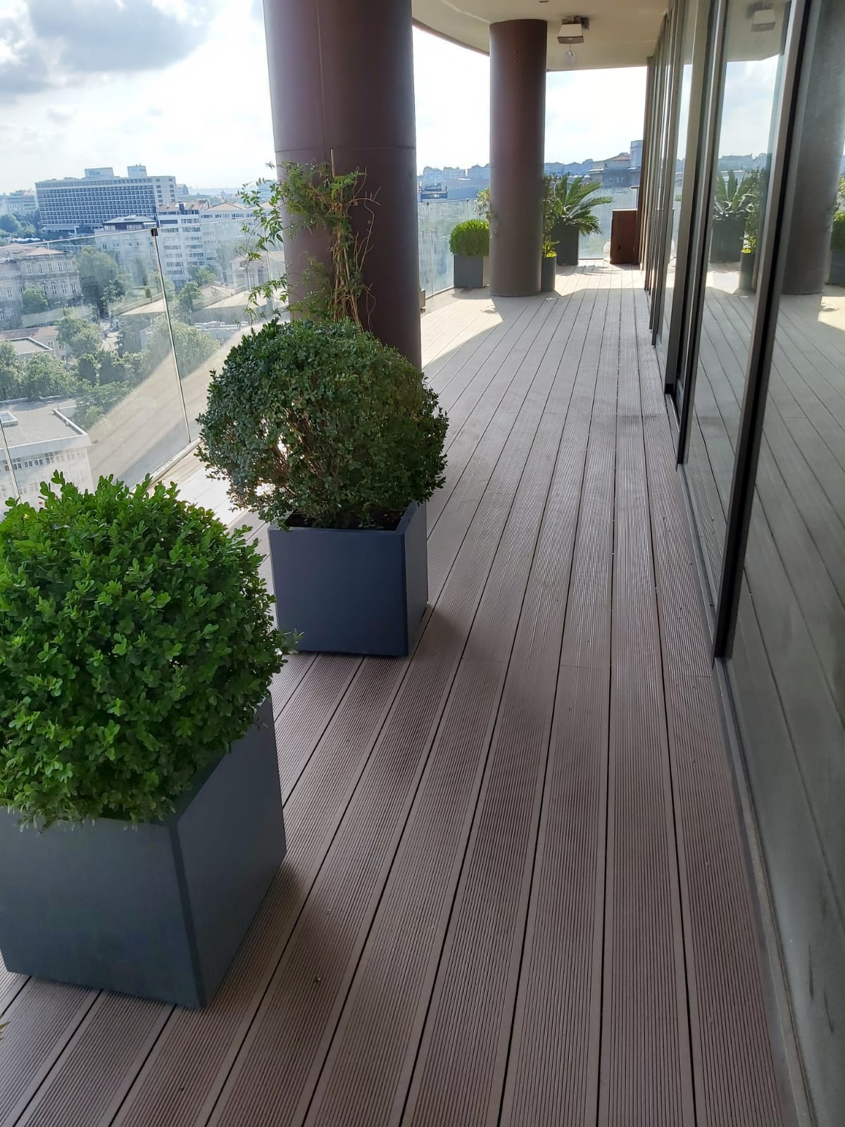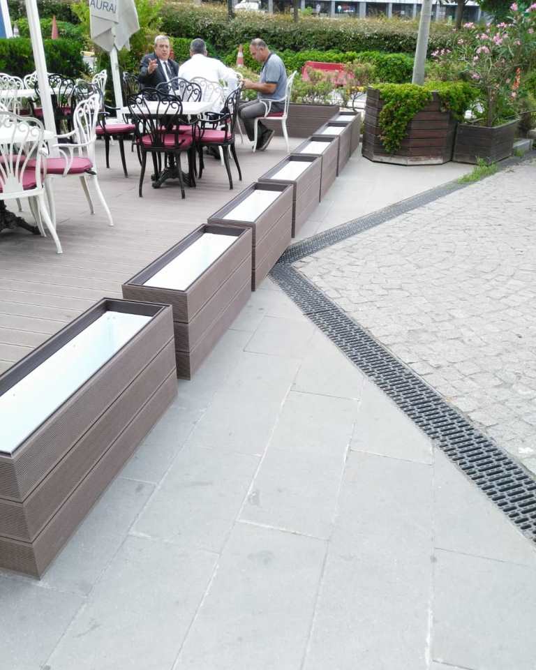 ERGO Azerbaycan'daki projede, teras katındaki cafe için zemin ve çiçeklik saksı uygulaması yapılmıştır.
